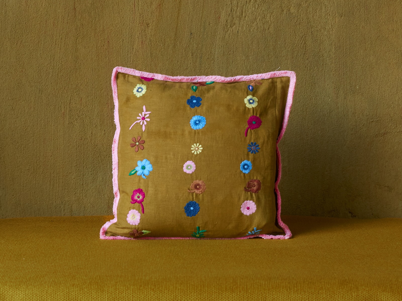Hand embroidered cushion, size 30 x 30 cm, made of a fine cotton linen.