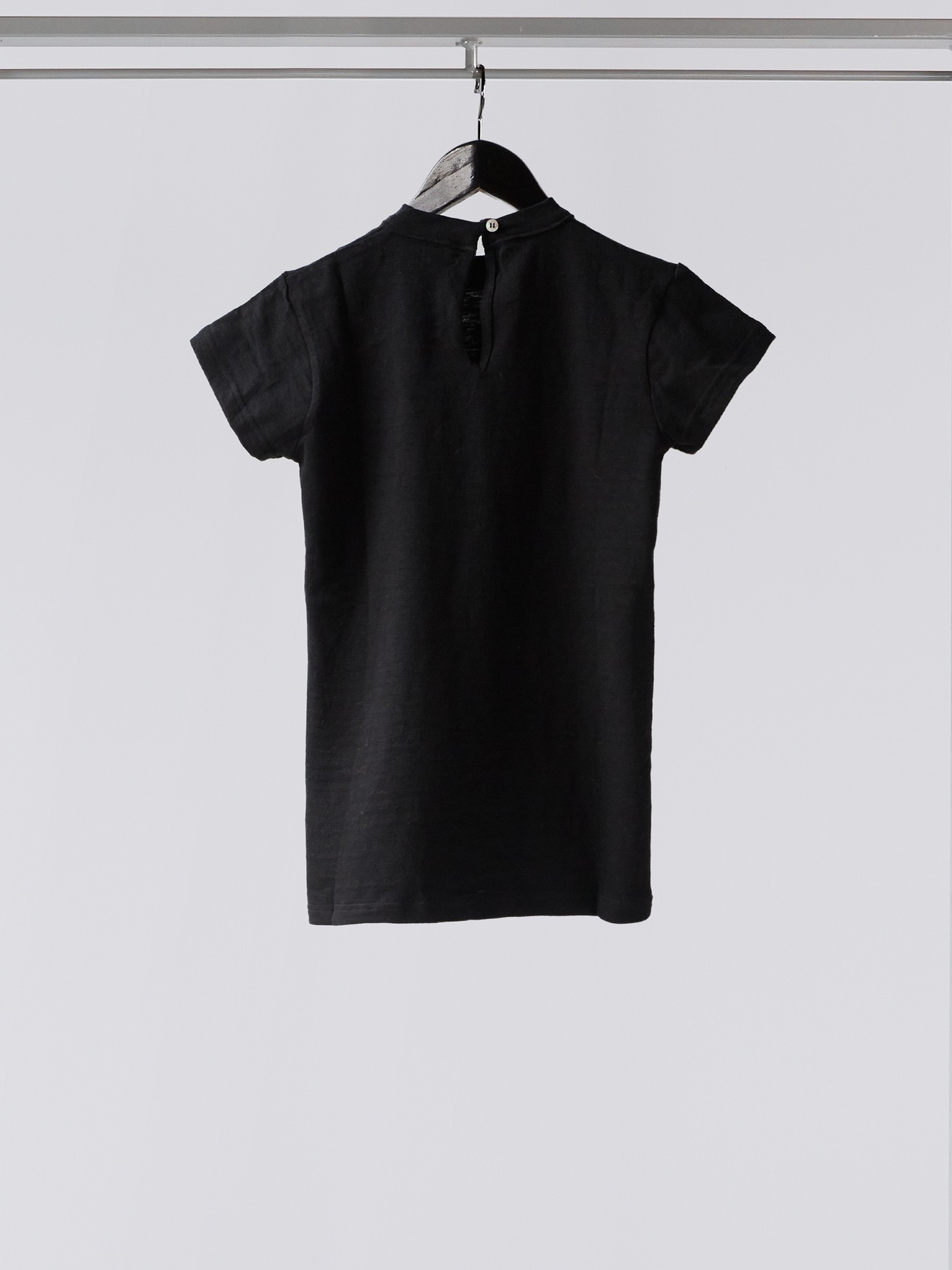 Black top made of a fine Japanese cotton jersey. With Customised hand embroidered Bixby flower