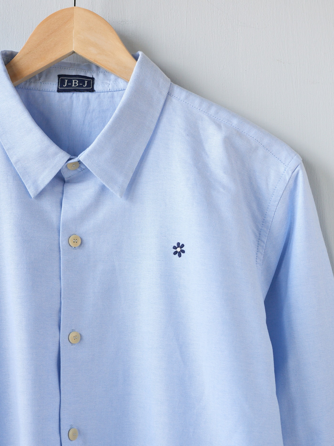 This classic men shirt is made of Oxford cotton and comes with a little hand embroidered flower on the chest. Machine washable