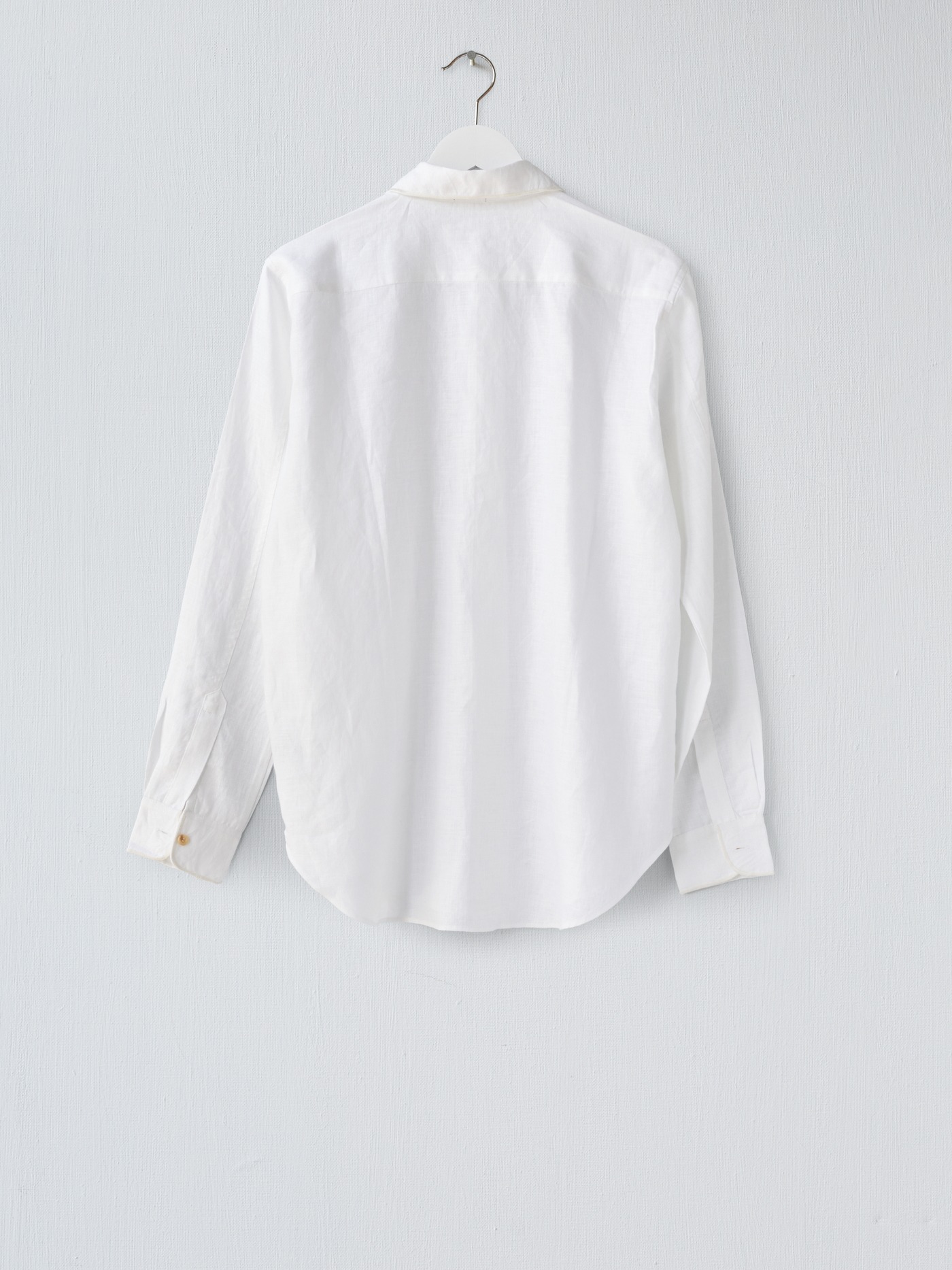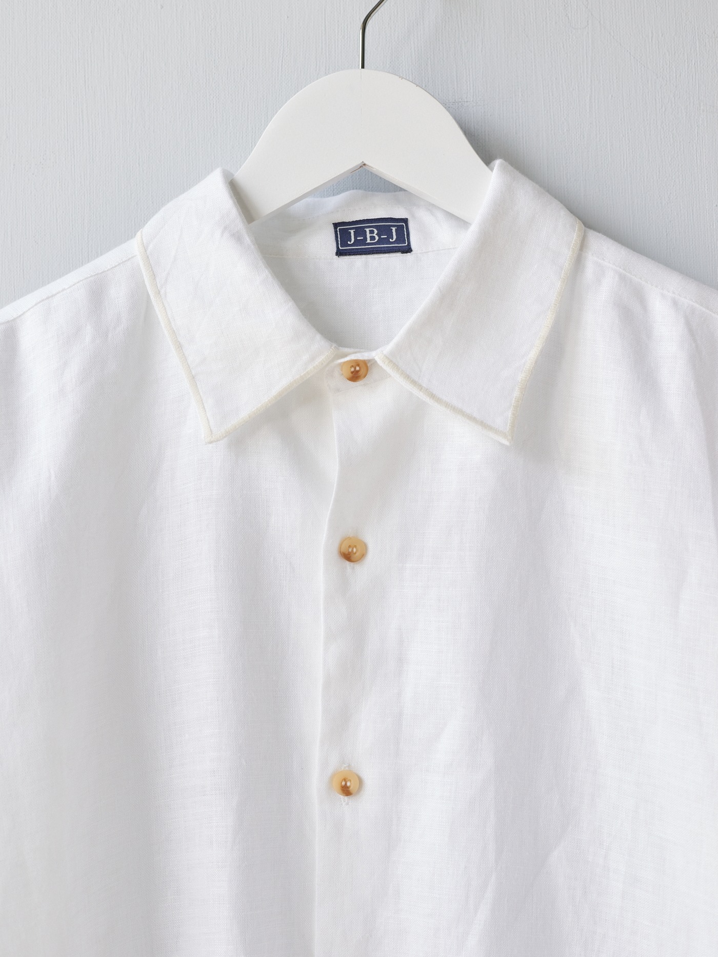 Milky white classic long-sleeve shirt, featuring subtle tone-on-tone hand-embroidered edges on the collar and cuffs.