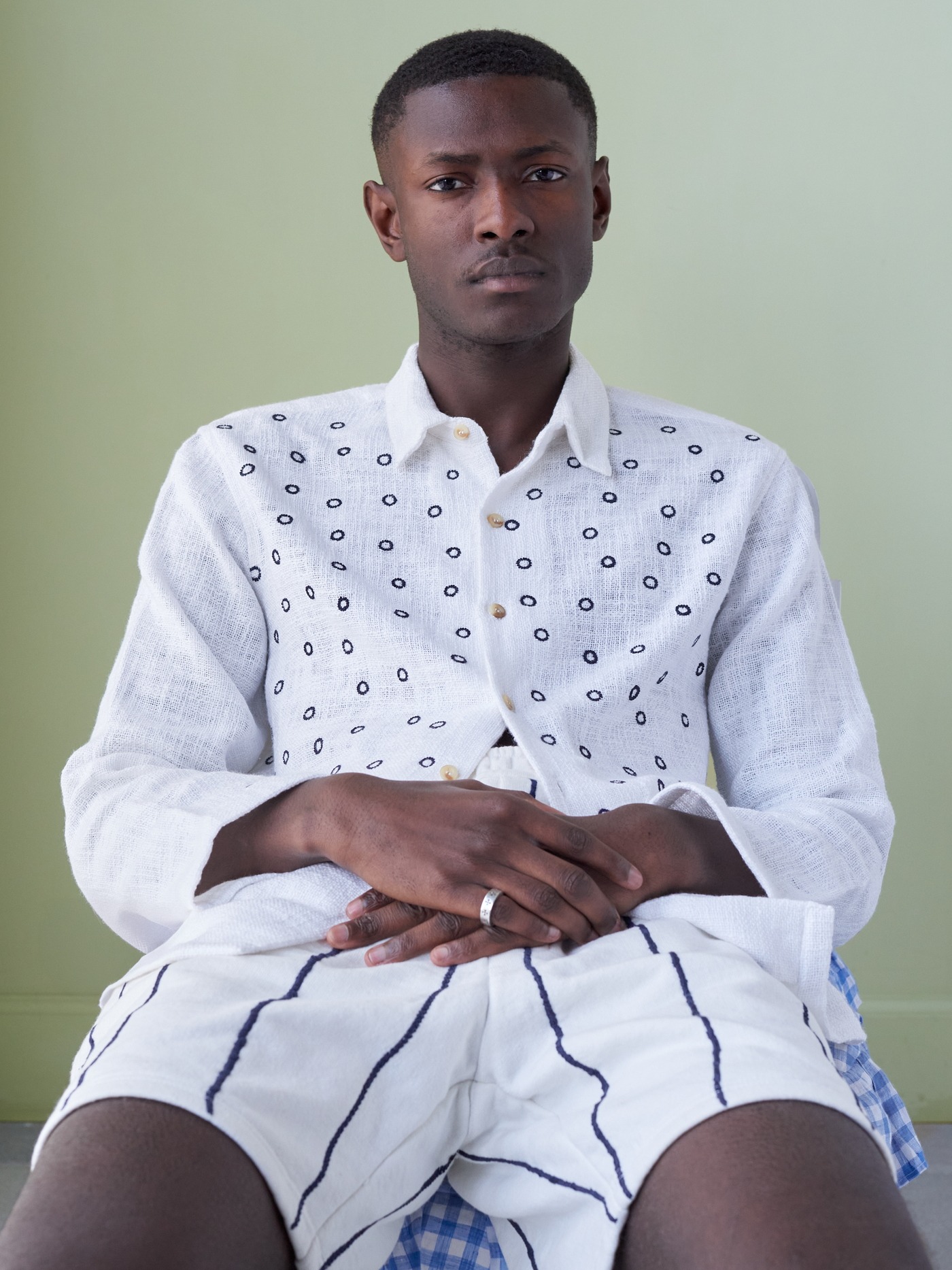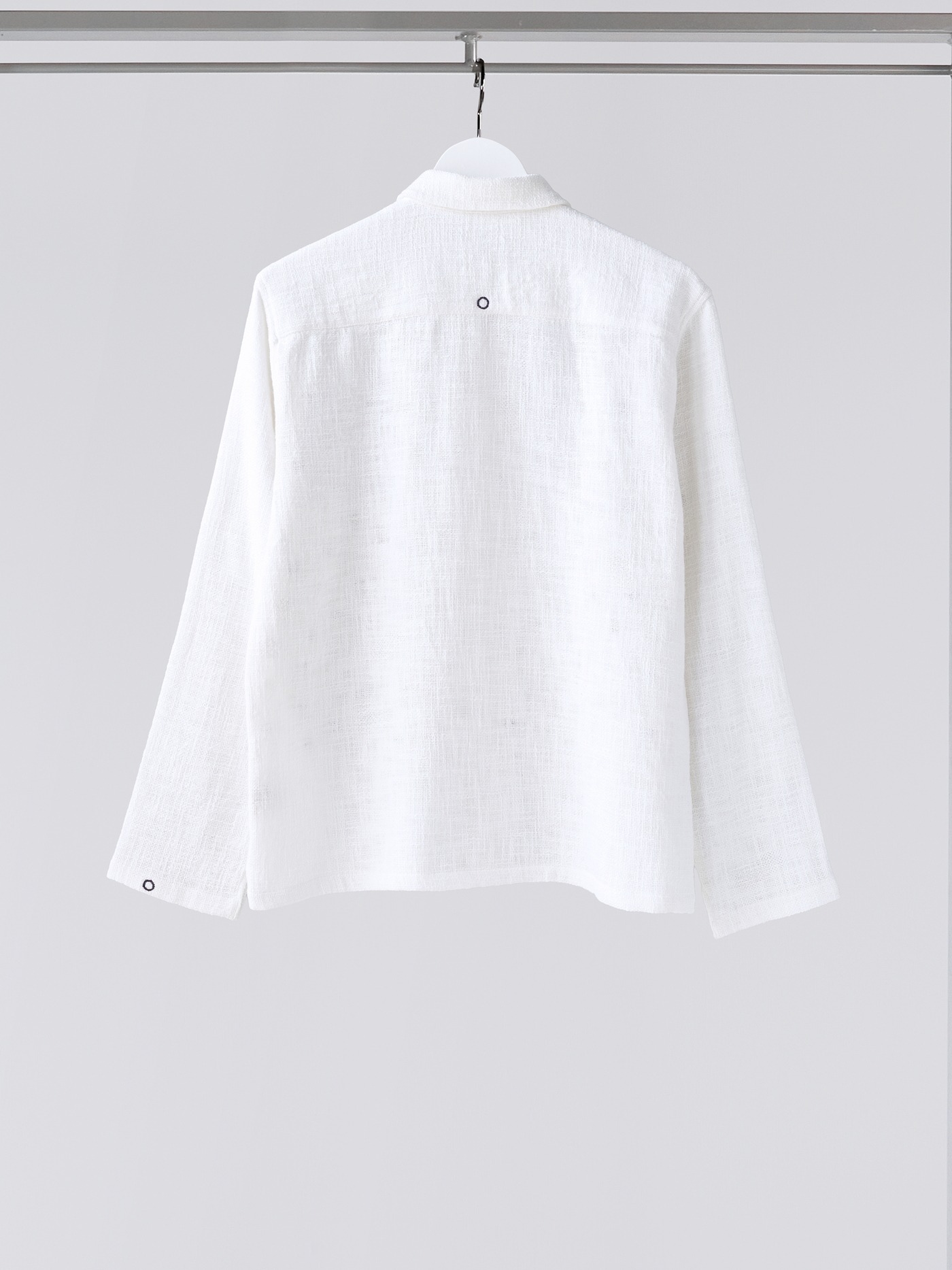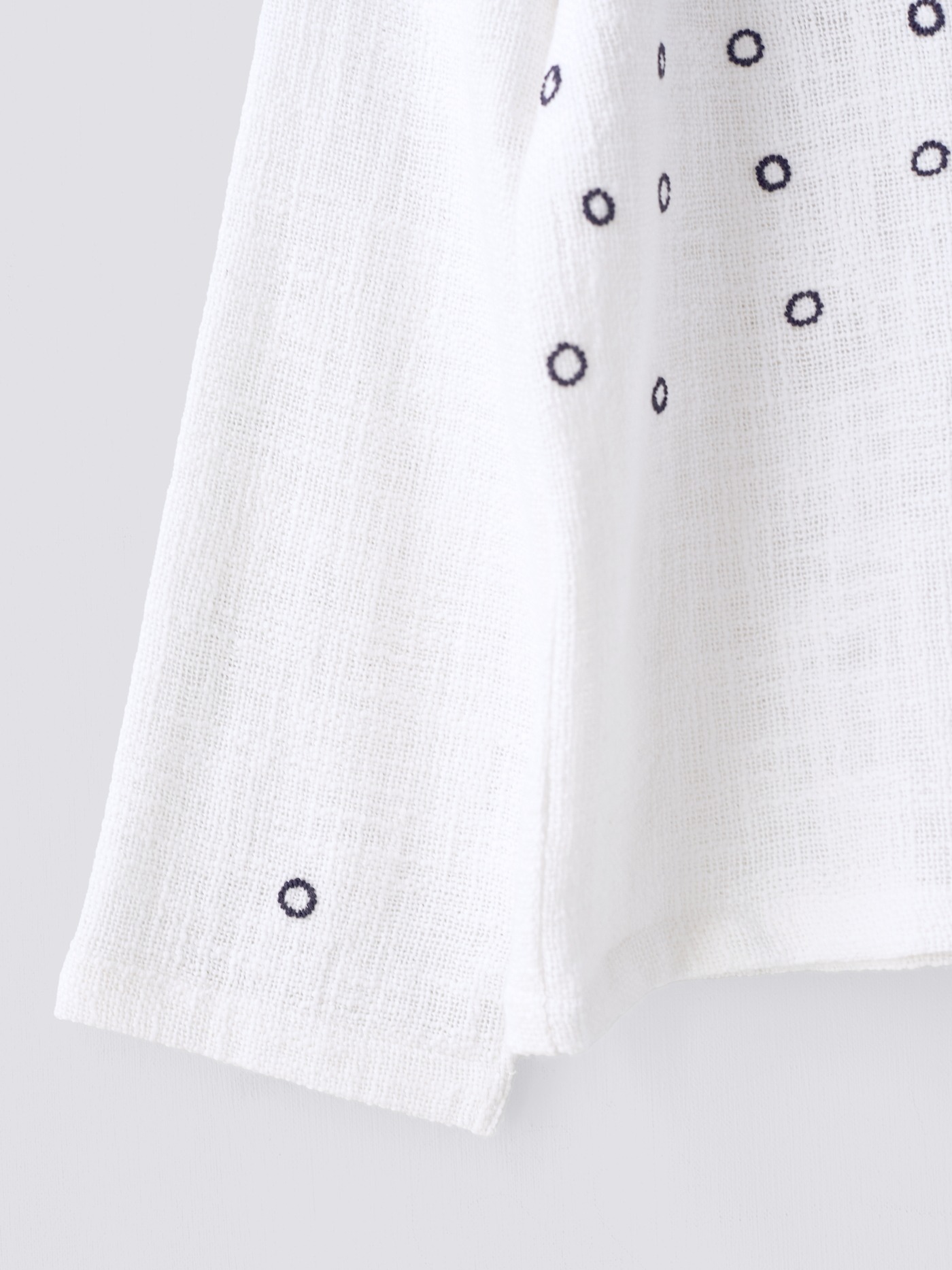 One of a kind khadi cotton shirt, hand embroidered with a circular design all over.