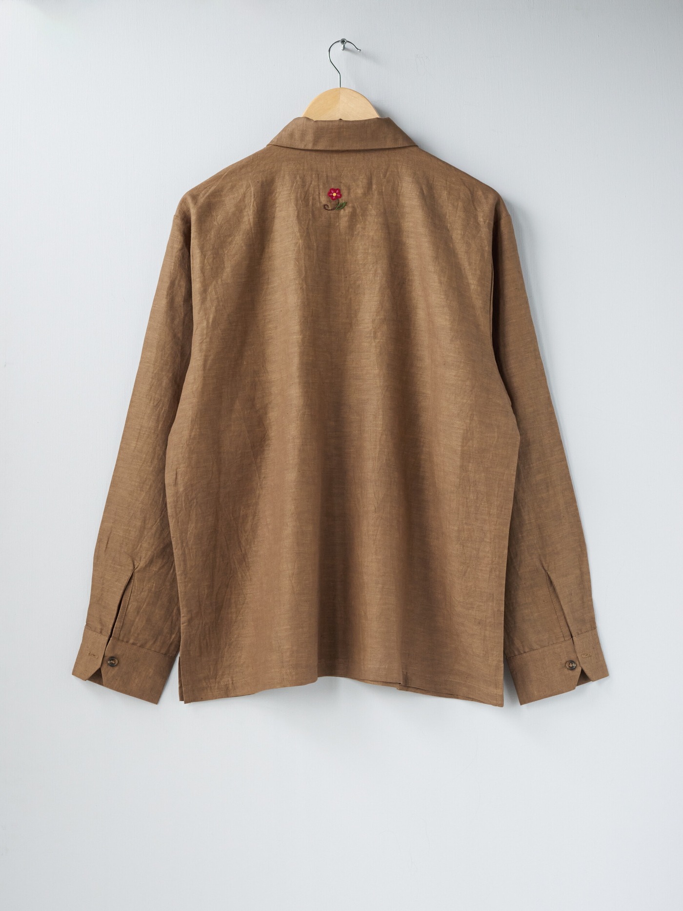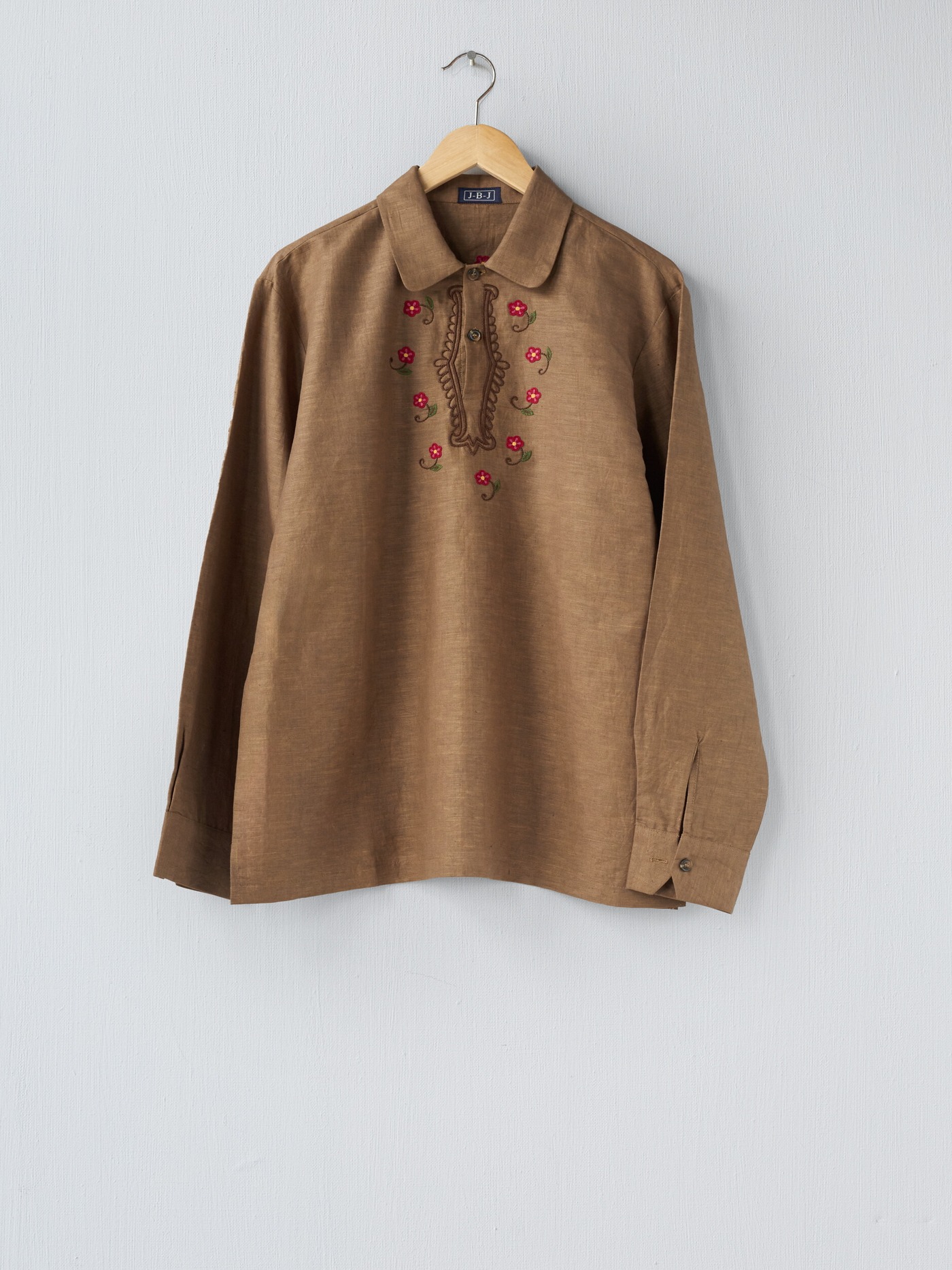 Linen cotton blend shirt. The original floral design on the front is intricately embroidered by hand.