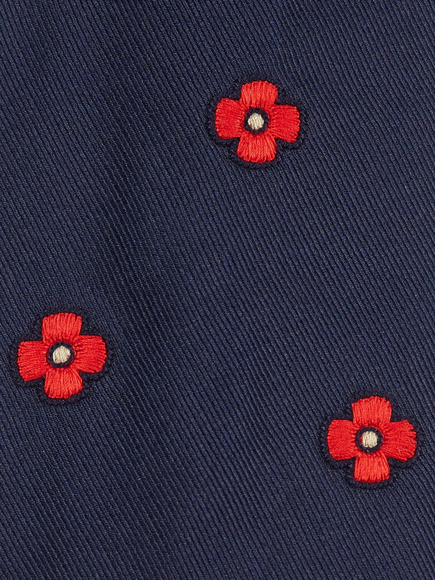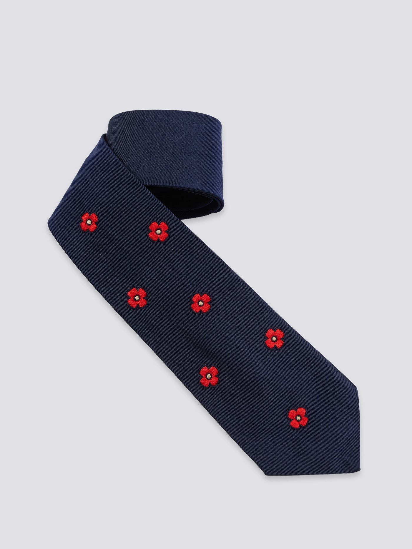 Hand embroidered floral tie . Happy flowers in cream and red.