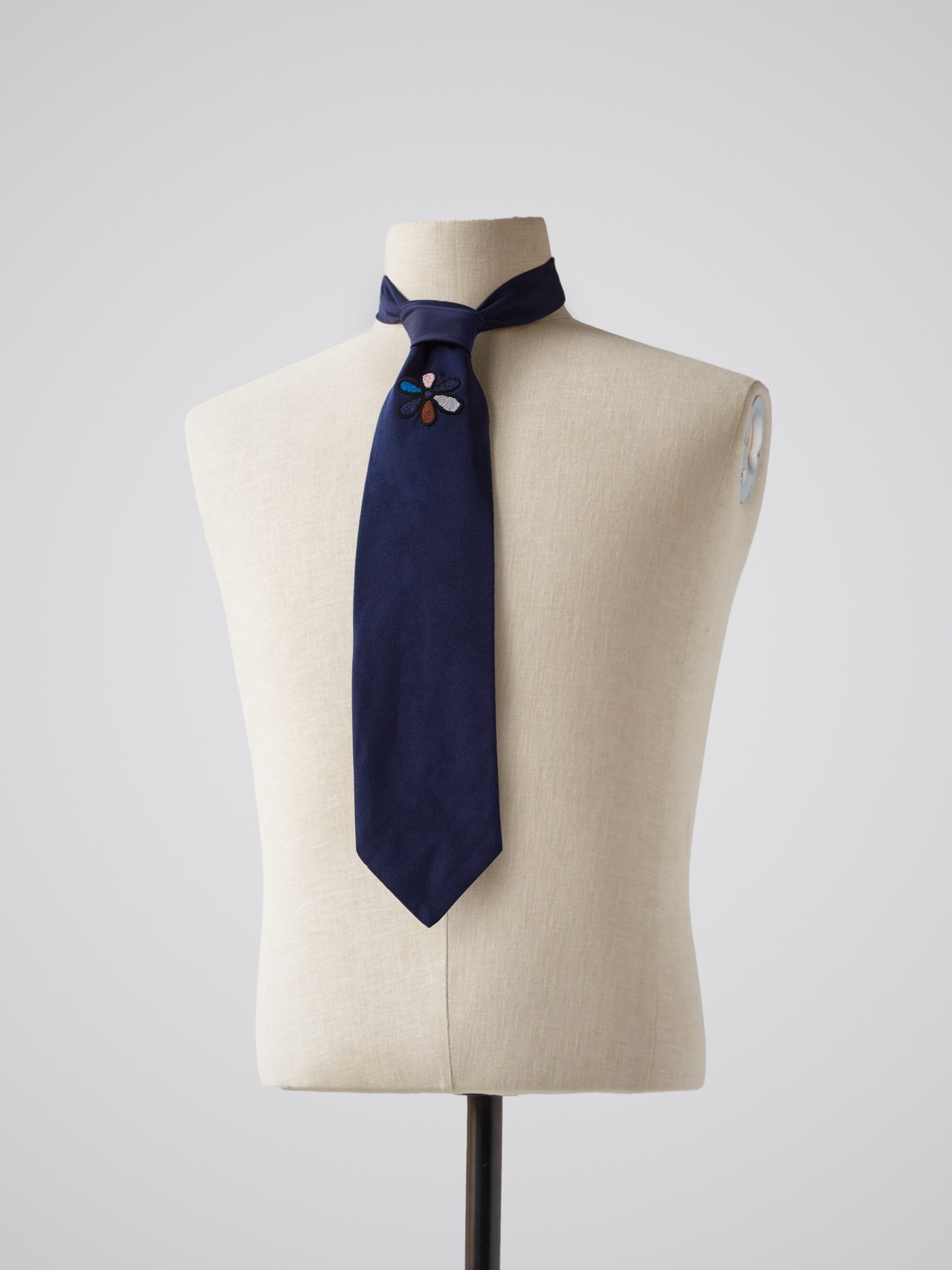 Hand embroidered silk floral tie.